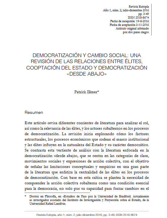 22 Abr Democratización y cambio social: Una revisión de las relaciones entre élites, cooptación del estado y democratización «desde abajo». by Jocelyn Concuá in Comments Ver más