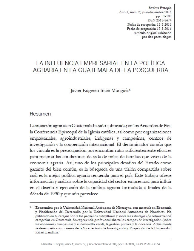 23 Abr La influencia empresarial en la política agraria en la Guatemala de la posguerra by Jocelyn Concuá in Comments Ver más