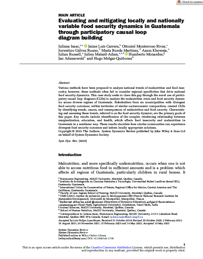 24 Abr Evaluating and mitigating locally and nationally variable food security dynamics in Guatemala through participatory causal loop diagram building by Jocelyn Concuá in Comments Ver más