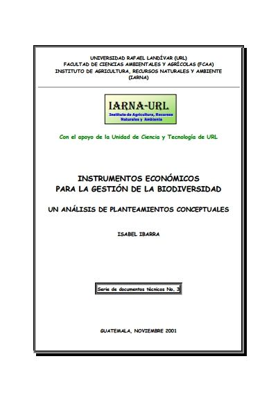 Publicación que presenta una propuesta preliminar para la aplicación de instrumentos económicos para la conservación de la biodiversidad en Guatemala....