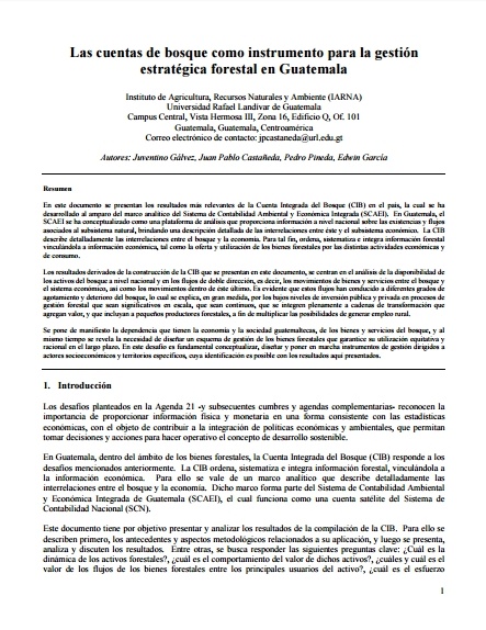 En este artículo se presentan los resultados más relevantes de la Cuenta Integrada del Bosque (CIB) en el país, la cual se ha desarrollado al amparo del marco analítico del Sistema de Contabilidad Ambiental y Económica Integrada (SCAEI). La CIB describe detalladamente las interrelaciones entre el bosque y la economía. Para tal fin, ordena, sistematiza e integra información forestal vinculándola a información económica, tal como...