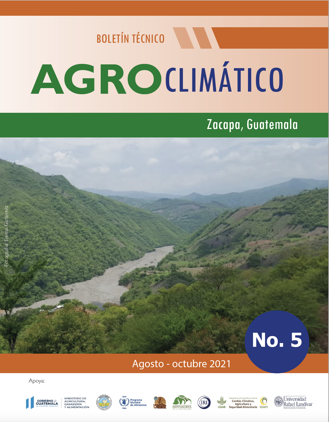 17 Ago Boletín Agroclimático de Zacapa No. 5 by Cecilia Cleaves in Comments Boletín Agroclimático de Zacapa No. 5, correspondiente al periodo agosto-octubre 2021.... Read More