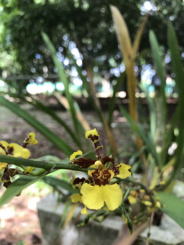 Planta epífita o litófita, grande, de 5o a 150 cm de alto. Pseudobulbos ovoides-elipsoidales o elipsoidales-cilíndricos. Dos hojas lineares, subcoriacéas, que emergen del pseudobulbo o del rizoma, que es corto. Inflorescencia vistosa con numerosas flores pequeñas de color amarillo con manchas café. Labelo con 3 lóbulos desiguales.