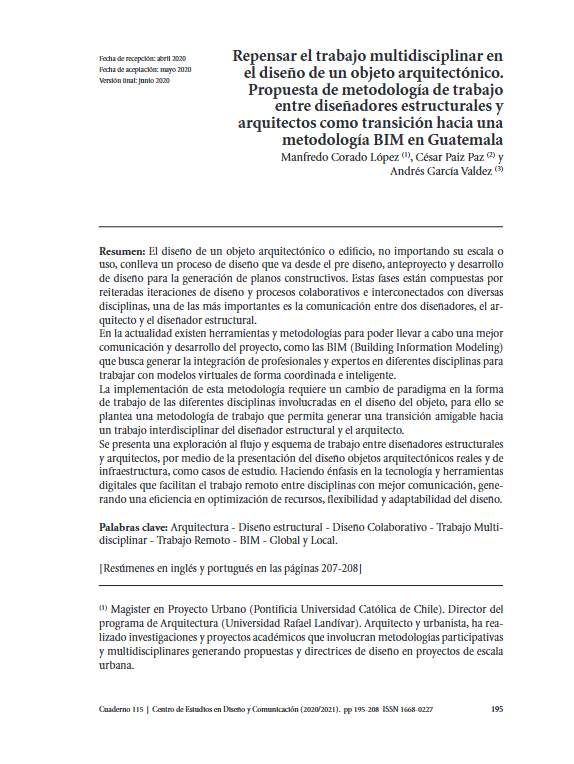 Read MoreEl diseño de un objeto arquitectónico o edificio, no importando su escala o uso, conlleva un proceso de diseño que va desde el pre diseño, anteproyecto y desarrollo de diseño para la generación de planos constructivos. Estas fases están compuestas por reiteradas iteraciones de diseño y procesos colaborativos e interconectados con diversas disciplinas, una de las más importantes es la comunicación entre dos diseñadores, el...