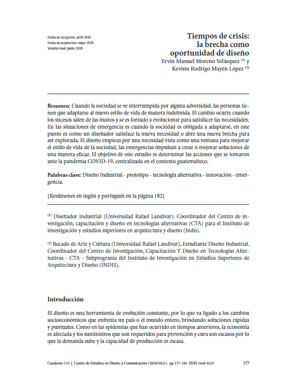 Read MoreCuando la sociedad se ve interrumpida por alguna adversidad, las personas tienen que adaptarse al nuevo estilo de vida indefinida. El cambio ocurre cuando los sucesos salen de las manos y se es forzado a evolucionar para satisfacer las necesidades. En las situaciones de emergencia es cuando la sociedad es obligada a adaptarse, en este punto es como un diseñador satisface la nueva necesidad o...
