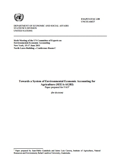 Artículo preparado para el departamento de asuntos económicos y sociales y la división de estadística de las Naciones Unidas, en donde se plantea entre otras cosas, la necesidad de un marco contable para la agricultura y el medio ambiente....